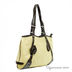 Классическая по форме модель декорирована ремешками и декоративным цветком. Основное отделение закрывается на молнию и содержит разного типа кармашки для аксессуаров. Подкладка - бежевый нейлон, фурнитура - серебро. Мягкие ручки средней длины.