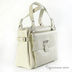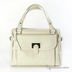 Небольшая сумка классической формы, с накладным карманом под клапаном на кнопке с лицевой стороны и с декоративными ремнями по бокам. Основное отделение закрывается на молнию и содержит карманы разного типа. Подкладка - золотой нейлон, фурнитура - серебро. Мягкие ручки средней длины, съемный регулируемый плечевой ремень. Жесткое дно с защитными ножками.