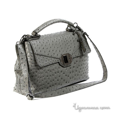 Строгая сумка - портфельчик из экокожи под страуса. Основное отделение под клапаном на замке разделено на две части разделением с молнией, содержит карманы разного типа. Подкладка - серый нейлон, фурнитура - черный антик. Короткая жесткая ручка и съемный плечевой ремень.