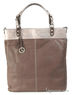 Вместительная сумка из натуральной кожи. Основное отделение закрывается на молнию, содержит разного типа карманы. С задней стороны карман на молнии. Подкладка бежевый хлопок, фурнитура серебро. Короткие жесткие ручки, регулируемый плечевой ремень.