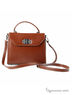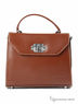 Строгая сумка - портфель. Основное отделение под клапаном на замке. Внутри сумки отделение на молнии, разделяющее ее на две части. Так же карманы разного типа. Подкладка - коричневый нейлон, фурнитура - серебро. Короткая жесткая ручка. Длинный, регулируемый, съемный плечевой ремень. Дно мягкое на ножках.