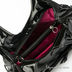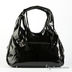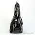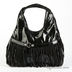 Женская сумка черного цвета из искусственной лаковой кожи гладкой фактуры. Сумка имеет мягкие стенки. Застежка на молнию. Два передних открытых кармана. Без наплечного ремня. С двумя ручками, удобными для носки на плече. Сумка декорирована бахромой из натуральной кожи и клепками. Внутри одно большое отделение, разделенное средником на молнии. Карман для мобильного телефона, открытый карман. Формованное мягкое дно, металлические ножки.