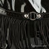 Женская сумка черного цвета из искусственной лаковой кожи гладкой фактуры. Сумка имеет мягкие стенки. Застежка на молнию. Два передних открытых кармана. Без наплечного ремня. С двумя ручками, удобными для носки на плече. Сумка декорирована бахромой из натуральной кожи и клепками. Внутри одно большое отделение, разделенное средником на молнии. Карман для мобильного телефона, открытый карман. Формованное мягкое дно, металлические ножки.
