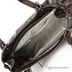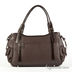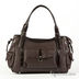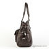 Женская сумка коричневого цвета из натуральной кожи гладкой фактуры. Сумка имеет мягкие стенки. Застежка на молнию. Один передний карман с клапаном на кнопке, два боковых кармана с клапанами на кнопке. Один карман на молнии на задней стенке. Без наплечного ремня. С двумя регулируемыми ручками. Сумка декорирована лаковыми вставками. Внутри одно большое отделение. Карман на молнии, карман для мобильного телефона, открытый карман. Формованное мягкое дно, металлические ножки.