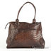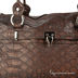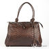 Женская сумка коричневого цвета из натуральной кожи рельефной фактуры. Сумка имеет жесткие стенки. Застежка на молнию. Один карман на молнии на задней стенке. Декорирована металлическим брелоком с логотипом бренда на ремешке. Без наплечного ремня. С двумя ручками. Внутри одно большое отделение, разделенное средником на молнии. Карман на молнии, карман для мобильного телефона, открытый карман. Формованное мягкое дно, металлические ножки.