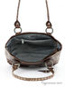 Изящная сумка из натуральной фактурной кожи. На лицевой и изнаночной стороне прорезные карманы на молнии. Основное отделение закрывается на молнию. Внутри отделение на молнии. Подкладка из ткани. Ручки средней длины позволяют носить сумку на плече. Цвет фурнитуры - серебристый.