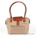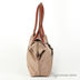 Женская сумка светло-коричневого цвета из текстиля гладкой фактуры. Сумка имеет жесткие стенки. Застежка на молнию и на декоративный клапан с кнопкой. Один карман на передней стенке с молнией. Один карман на молнии на задней стенке. Сумка дополнена боковыми кнопками, регулирующими форму изделия. Без наплечного ремня. С двумя жесткими ручками. Внутри одно большое отделение. карман на молнии, карман для мобильного телефона, открытый карман. Формованное твердое дно, без ножек.
