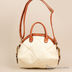 Основное отделение застегивается на молнию. На внутренних стенках один втачной карман на молнии и один открытый для мобильного телефона. Наплечный ремень отстегивается от изделия и регулируется по длине. Оригинальный крой изделия.