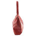 Женская сумка из матовой натуральной кожи красного цвета, по всему контуру эмблемы в виде трафарета. Замок на молнии. Внутри один отдел. На широкой ручке через плечо, дно формованное.
