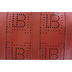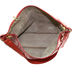 Женская сумка из матовой натуральной кожи красного цвета, по всему контуру эмблемы в виде трафарета. Замок на молнии. Внутри один отдел. На широкой ручке через плечо, дно формованное.