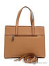 Женская сумка из натуральной кожи бежевого цвета. Внутри два отдела, разделены средником на молнии, с одной стороны скрытый карман на молнии, с другой два открытых кармана для сотового телефона и мелочи. Размеры: 33х25х14 см, длина ручек 16 см.