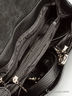 Карман на задней стенке, внутри одно отделение разделенное карманом на молнии, на внутренних стенках стандартные карманы для мелочей. 22х18х7 см