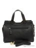 Женская сумка из натуральной кожи черного цвета. Внутри одно отделение, с одной стороны скрытый карман на молнии, с другой два открытых кармана для сотового телефона и мелочи. Размеры: длина 32 см, высота 21 см, ширина 17 см, длина ручек 11 см.