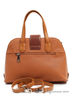 Женская сумка из натуральной кожи коричневого цвета. Внутри два отдела, разделены средником на молнии, с одной стороны скрытый карман на молнии, с другой два открытых кармана для сотового телефона и мелочи. Размеры: 32х22х13 см, длина ручек 13 см.