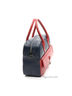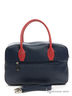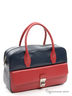 Женская сумка из натуральной кожи синего и красного цвета. Внутри одно отделение, с одной стороны скрытый карман на молнии и накладной карман с молнией, с другой два открытых кармана для сотового телефона и мелочи. Размеры: длина 33 см, высота 21 см, ширина 11 см, длина ручек 12 см.