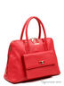 Женская сумка из натуральной кожи красного цвета. Внутри два отдела, разделены средником на молнии, с одной стороны скрытый карман на молнии, с другой два открытых кармана для сотового телефона и мелочи. Размеры: длина 36 см, высота 23 см, ширина 14 см. Длина ручек 13 см.