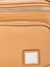 Имеются металлические ножки, на задней стенке карман, внутри 2 отделения, разделенные карманом на молнии. 25х16х12 см