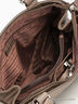 Имеются металлические ножки, на задней стенке карман, внутри 2 отделения, разделенные карманом на молнии. 21х25х12 см