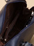 Имеются металлические ножки, на задней стенке карман, внутри 2 отделения, разделенные карманом на молнии. 27х27х10 см