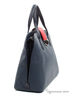 Женская сумка из натуральной кожи синего цвета. Внутри два отдела, разделены средником на молнии, с одной стороны скрытый карман на молнии, с другой два открытых кармана для сотового телефона и мелочи. Размеры: длина 36 см, высота 28 см, ширина 15 см, длина ручек 13 см.