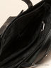 Закрывается на молнию, внутри одно отделение разделенное карманом на молнии. На внутренних стенках один карман на молнии, и два открытых кармана - для мобильного телефона и мелких документов.На задней стенке карман на молнии. 26х18х10 см