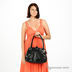Оригинальная сумка из натуральной фактурной кожи со вставками кожи с тиснением. Сумка имеет мягкие стенки. На задней стороне сумки один карман на молнии. Основное отделение застегивается на маленькую застежку-клапан с оригинальным замком и молнию. Внутри одно большое отделение, два небольших кармана на молнии и два открытых кармана для мобильного и портмоне. Основание ручки дополнено стильными металлическими вставками. Практичные ручки средней длины из лакированной кожи с тиснением позволит Вам носить изделие не только в руках, но и на плече. Есть 4 металлические ножки. Цвет фурнитуры серебро.