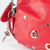 Оригинальная и яркая сумочка из натуральной фактурной кожи. Стенки мягкие. Передняя часть декорирована вставками из клепок и страз. Основное отделение застегивается на молнию. Внутри одно большое отделение, два небольших кармана на молнии и два открытых кармана для мобильного и портмоне. Ручка выполнена из кожи с металлическим вплетением в виде цепочки. Длинный регулируемый съемный ремешок из тонкой кожи. Ножек нет. Цвет фурнитуры серебро, золото.