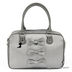 Изящная женская сумка из текстиля. Стенки изделия средней жесткости. Передняя часть сумки декорирована бантами. Основное отделение застегивается на молнию. Внутри два открытых кармашка и один прорезной карман на молнии. Подкладка из текстиля. Ручки средней длины позволяют носить сумку на плече.