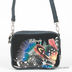 Изящная женская сумка из текстиля. Стенки изделия средней жесткости. Передняя часть сумки декорирована пайетками, металлической вставкой, и принтом. Два отделения застегиваются на молнии. Внутри один прорезной карман на молнии. Подкладка выполнена из текстиля. Наплечный ремень из кожзама регулируется по длине и отстегивается от изделия.
