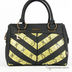Эксклюзивная женская сумка из искусственной кожи. Стенки изделия средней плотности. Передняя часть сумки декорирована вставками из искусственной кожи под рептилию. Основное отделение застегивается на молнию. Внутри один прорезной карман на молнии. Подкладка - текстиль. Ручки средней длины позволяют носить сумку на плече. Цвет фурнитуры - темно-золотой. Дно формованное с металлическими ножками.