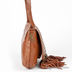 Изящная женская сумка из натуральной кожи. Стенки изделия средней жесткости. Сумка декорирована кисточками и металлическими вставками. Основное отделение клапан с магнитной кнопкой. Внутри два открытых кармашка и один прорезной карман на молнии. Подкладка - текстиль. Наплечный ремень регулируется по длине.