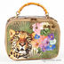 Уникальная женская сумка из искусственной кожи под рептилию. Стенки изделия средней плотности. Передняя часть сумки декорирована текстильной вставкой с оригинальным принтом. Основное отделение застегивается на молнию. Внутри один открытый кармашек и один прорезной карман на молнии. Подкладка - текстиль. Небольшая бамбуковая ручка и съемный ремешок в комплекте. Цвет фурнитуры - темно-золотой, ножки отсутствуют. Дно формованное.