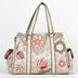 Одно большое отделение, внутренний карман на молнии, карман для мелочей, карман под мобильный телефон, два боковых кармана на магнитной кнопке. Декоративный брелок на ручке, вышивка, нашивки из кожезаменителя. Возможность прситегнуть длинный ремешок с регулирующейся длиной.