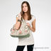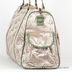 Женская сумка выполнена из комбинации искуственного шелка и кожезаменителя, на ножках, закрывается на молнию.