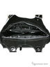 Закрывается на молнию. Внутри: одно большое отделение, разделено карманом на молнии для документов. С боку карман на молнии для мелких предметов, и два плоских кармана с другой стороны. С наружи три маленьких кармана на молнии, и с боку еще два.