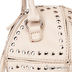 Округлая модель с двумя ручками и на регулируемом ремешке застегивается на молнию. Одно основное отделение, два внутренних кармашка. Внешняя сторона декорирована металлическими элементами.