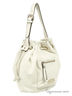 Маленькая сумка - мешочек. Одно отделение на кнопке, затягивается на тоненькие ремешки. Внутри имеются карманы разного типа. С лицевой стороны карман на молнии, лого. Подкладка - коричневый нейлон, фурнитура - золото. Одинарная ручка - ремешок с возможностью регулировки длинны. Дно мягкое , форма. 21(37)-20-6см