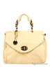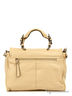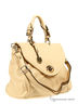 Строгая сумка - портфель. Основное отделение на молнии под клапаном на замке. Внутри сумки отделение на молнии, разделяющее ее на две части. С задней стороны карман на молнии. Подкладка - коричневый нейлон, фурнитура - золото. Короткая мягкая ручка, съемный плечевой ремень. Дно мягкое, форма. 22(36)-31-15см