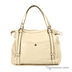 Вместительная сумка. Одно отделение на молнии. Внутри сумки отделение на молнии, разделяющее ее на две части, карманы разного типа. С лицевой стороны карман на кнопке, с задней - карман на молнии. Декоративный элемент в виде ремешков с лицевой и задней стороны. Подкладка - коричневый нейлон, фурнитура - светлое золото. Ручки мягкие, короткие, плечевой регулируемый ремень. Дно мягкое, форма. 27(47)-36-16см