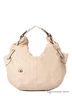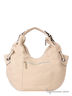 Вместительная дамская сумка-мешок. Одно отделение на молнии. Внутри отделение на молнии, разделяющее ее на две части, так же карманы разного типа. С задней стороны карман на молнии. Ручка средней длины. Подкладка - бежевый нейлон, фурнитура - золото. Дно мягкое. 25(45)-40-14см