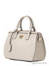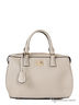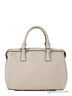 Небольшая дамская сумка. Одно отделение на молнии. Внутри отделение на молнии, разделяющее ее на две части, так же карманы разного типа. Подкладка - бежевый нейлон, фурнитура - золото. Две короткие ручки. Длинный, регулируемый ремень. Дно на ножках. 20(31)-29-11см