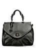 Строгая сумка - портфель. Основное отделение на молнии под клапаном на замке. Внутри сумки отделение на молнии, разделяющее ее на две части. С задней стороны карман на молнии. Подкладка - коричневый нейлон, фурнитура - золото. Короткая мягкая ручка, съемный плечевой ремень. Дно мягкое, форма. 22(36)-31-15см