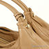 Интересной формы дамская сумка.Три отделения, из них - одно на молнии, два на кнопке. Внутри карманы разного типа. Подкладка - коричневый нейлон, фурнитура - светлое золото. Ручки твердые, короткие. Дно мягкое. 24(42)-37-13см
