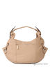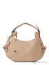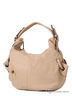 Дамская сумка-мешок. Одно отделение на молнии. Внутри отделение на молнии, разделяющее ее на две части, так же карманы разного типа. С задней стороны карман на молнии. Ручка средней длины. Подкладка - бежевый нейлон, фурнитура - золото. Дно мягкое. 20(41)-37-11см
