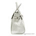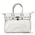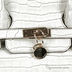 Строгая, классическая модель, натуральная кожа под "крокодила". Одно отделение на молнии. Внутри сумки отделение на молнии, разделяющее ее на две части. Основной декоративный элемент - ремешок в верхней части сумки. Также с задней стороны карман на молнии. Подкладка - коричневый нейлон, фурнитура - золото. Твердые, короткие ручки. Дно твердое. 26(40)-35-15см