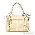 Вместительная сумка. Одно отделение на молнии. Внутри сумки отделение на молнии, разделяющее ее на две части, карманы разного типа. С лицевой стороны карман на кнопке, с задней - карман на молнии. Декоративный элемент в виде ремешков с лицевой и задней стороны. Подкладка - коричневый нейлон, фурнитура - светлое золото. Ручки мягкие, короткие, плечевой регулируемый ремень. Дно мягкое, форма.