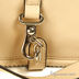 Небольшая дамская сумка с клапаном. Основной декоративный элемент в виде застежки - корабина на клапане. Внутри сумки три отделения, содержащие разного типа карманы. С задней стороны карман на молнии. Подкладка - коричневый нейлон, фурнитура - золото. Длинный, регулируемый плечевой ремень. Дно мягкое, форма.
