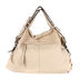 Большая дамская сумка, состоящая из одного отделения, содержащего разного типа карманы, декоративные элементы в виде сжатия по бокам с помощью ремешков, с задней стороны карман на молнии. Подкладка темно-серый полиэстэр, фурнитура золото. Ручки мягкие короткие. Дно мягкое.