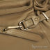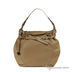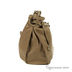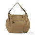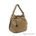 Дамская сумка. Одно отделение на молнии. Внутри карманы разного типа. С лицевой стороны сверху ремешок, за счет которого происходит небольшое сжатие сумки. С задней стороны карман на молнии, по бокам декоративный разрез для увеличения объема. Подкладка - коричневый нейлон, фурнитура - светлое золото. Ручка средней длинны. Дно мягкое, форма
