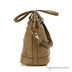 Интересная модель с закругленным верхом. Одно отделение на молнии. Внутри сумки отделение на молнии, разделяющее ее на две части. Подкладка - коричневый нейлон, фурнитура - светлое золото. Основной декоративный элемент - вставки из более жесткой кожи с лицевой и задней стороны сумки. Также с задней стороны карман на молнии. Мягкие короткие ручки, съемный, регулируемый плечевой ремень. Дно на ножках.
